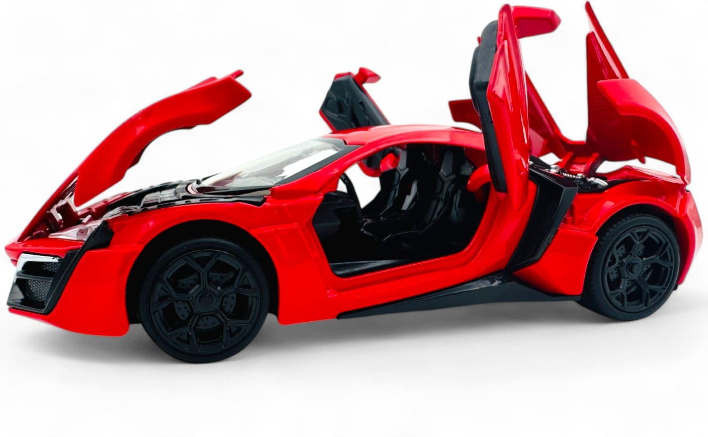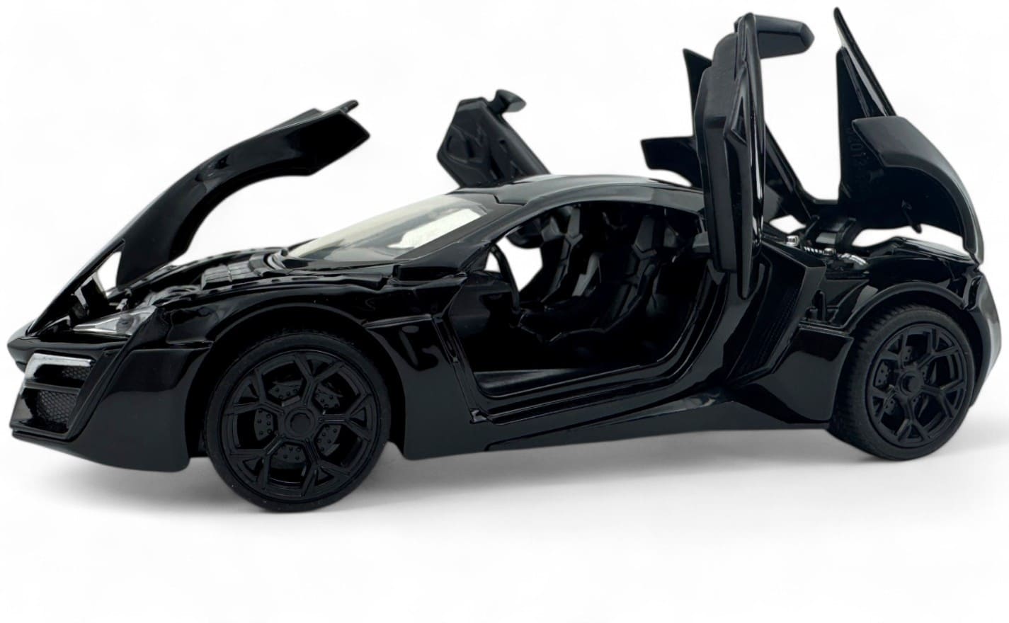 very good die-cast model of Lykan Hyper sport car. Looks exactly the same and beautiful. All doors are opening, lights and sound too. My son loved it!