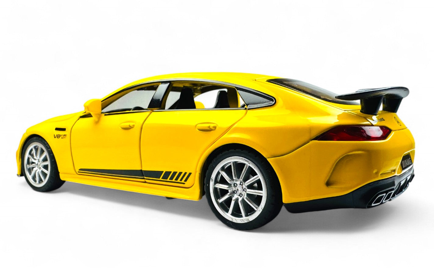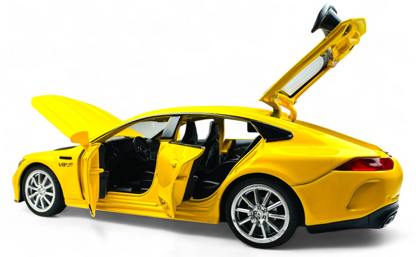 Toy Car Die cast model toy car which is made from metal and is available in a sporty colour. Toy Car sports an original sports car look along with a 4 wheel drive. The doors of the Alloy Car Model car can be opened which gives the car a realistic and sporty feel. Metal Cars for Kids Toys The lower base plate and interiors of the car are made of plastic along with a smooth finish to give it a sporty look.